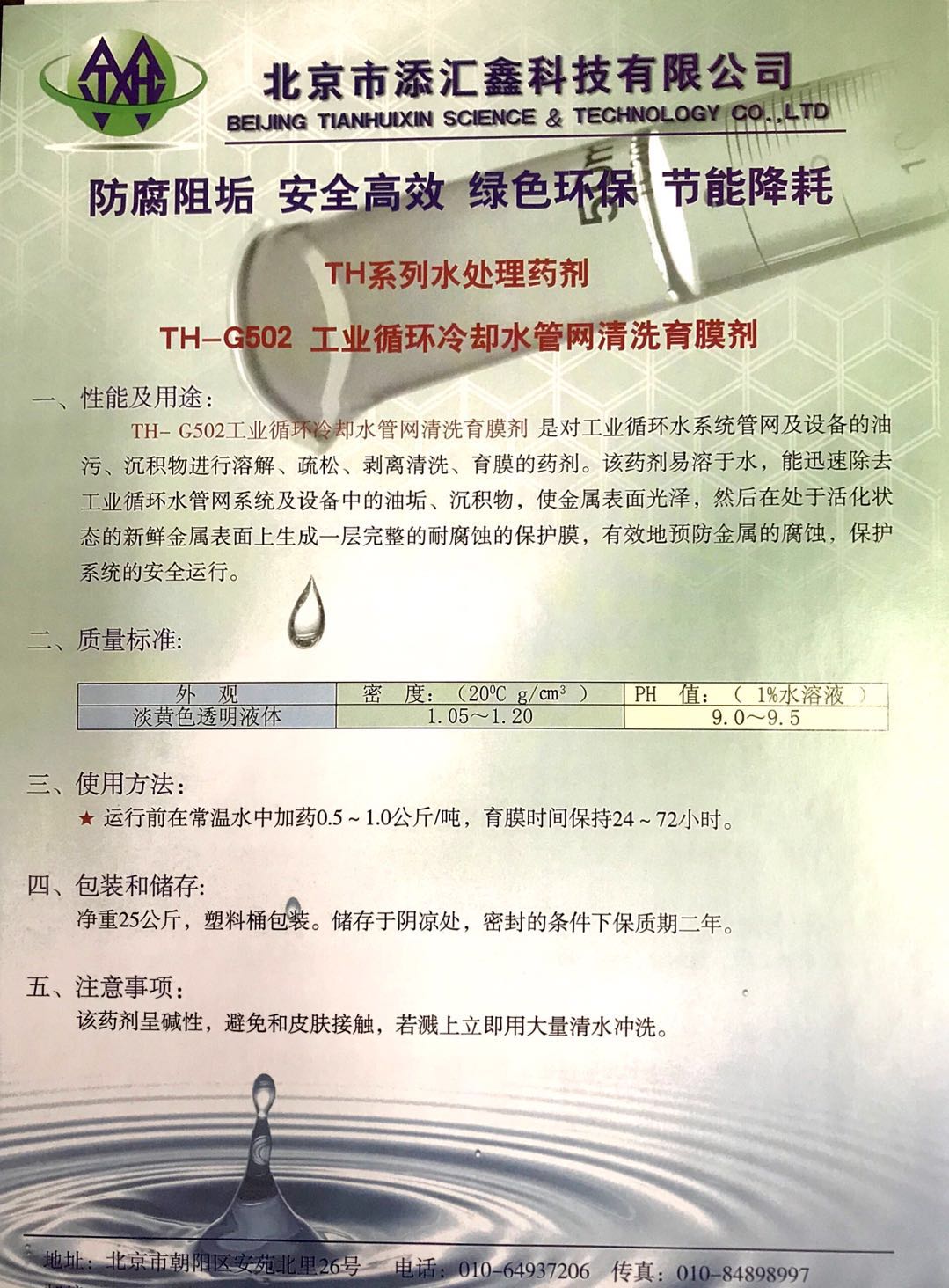 TH-G502工业循环冷却水管网清洗育膜剂