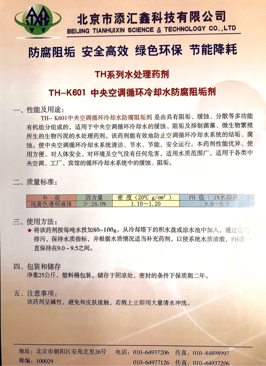 TH-K601中央空调循环冷却水防腐阻垢剂